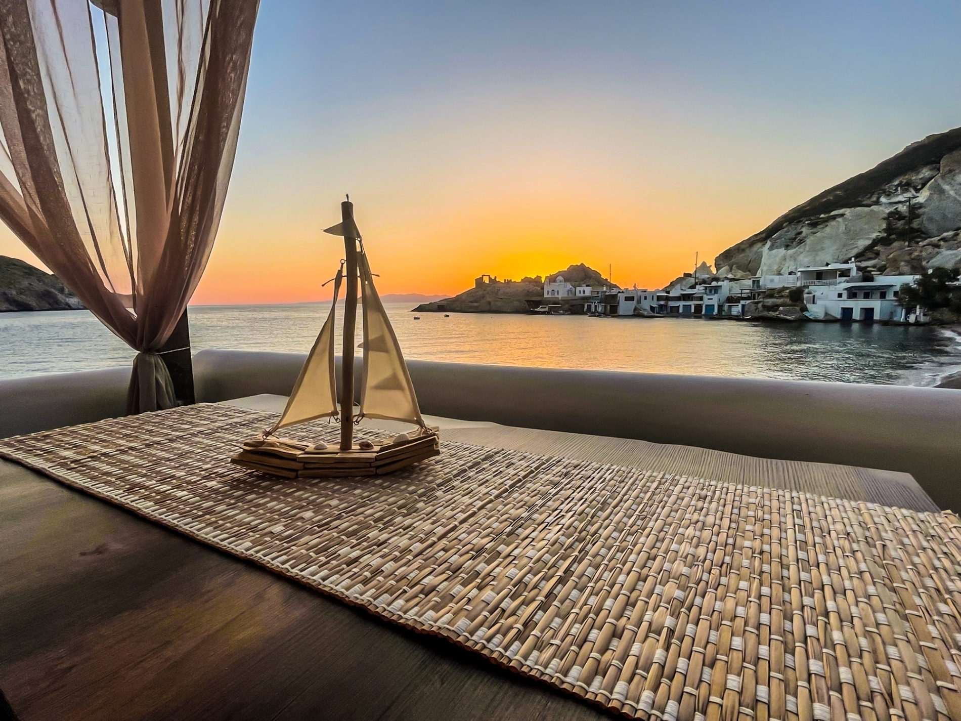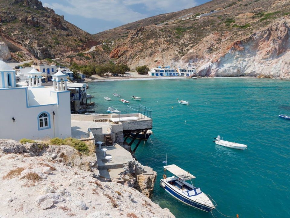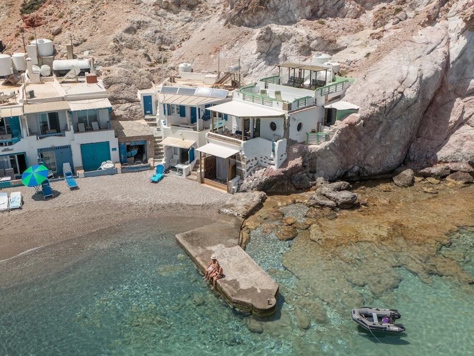 Firopotamos is a fishermen’s village by the sea, tucked into a cove on the north side of Milos, with traditional houses with "syrmata" (boat garages) carved into the rocks. It has a small, pretty lively and unforgettable beach where you can enjoy swimming and snorkeling. The location is ideal for relaxation and countless heavenly moments. If you’re staying in the area, you’ll wake to the sound of gentle waves, a stunning sunrise and the scent of sea air drifting through the morning.